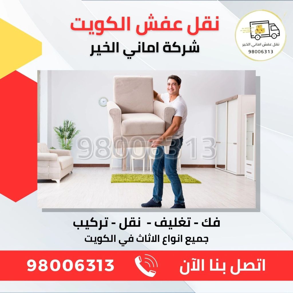 إذا كنت بحاجة إلى خدمات نقل عفش في الكويت، فإن الرقم (98006313) يبدو مخصصًا لشركة تقدم خدمات نقل الأثاث في جميع مناطق الكويت، بما في ذلك فك وتركيب وتغليف الأثاث لضمان سلامته أثناء النقل.يمكنك الاتصال بهم لمعرفة التفاصيل حول:الأسعار.الخدمات المقدمة (مثل التغليف الخاص أو فك الأثاث المعقد).وقت الاستجابة وتوافر الخدمة في منطقتك.إذا كنت بحاجة إلى توصيات أخرى أو مقارنة بين مزودي الخدمة، فأخبرني!